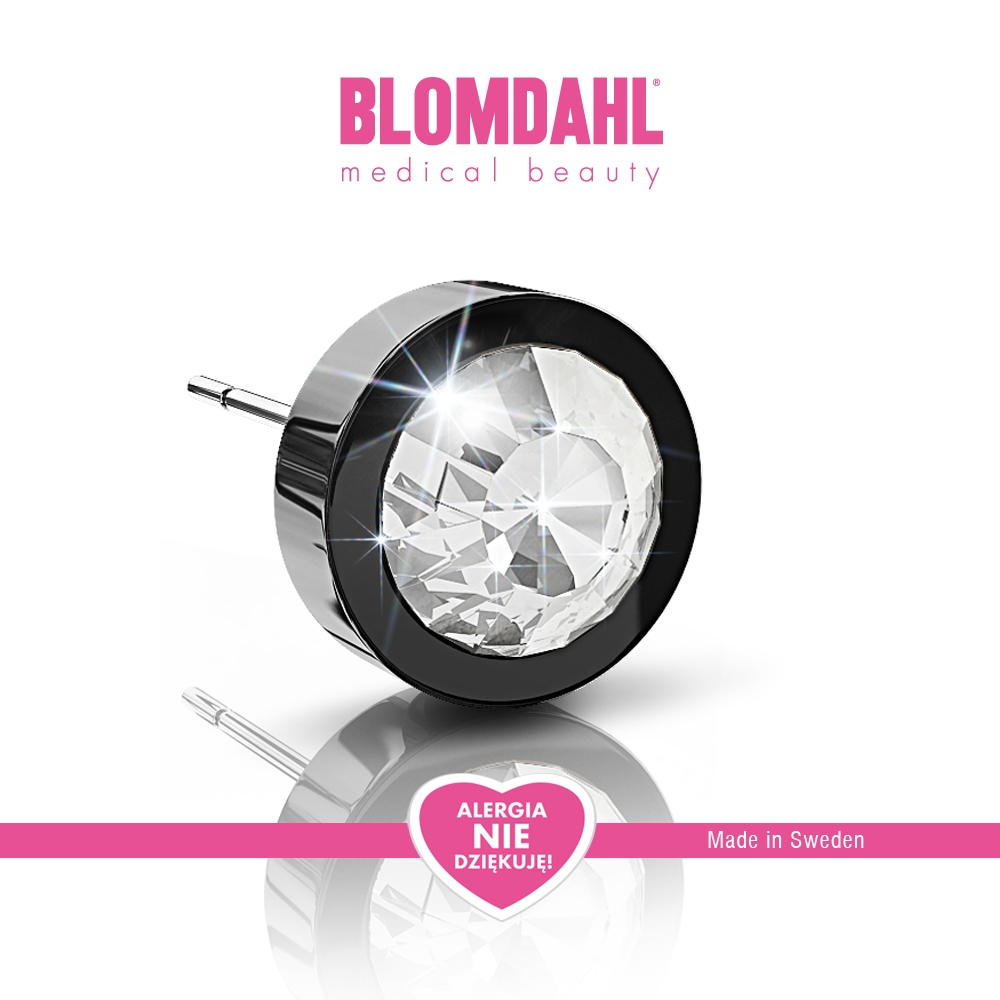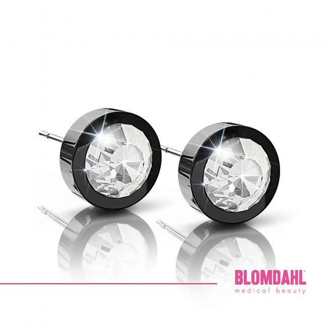 Grand Bezel Crystal 8 mm SFJ Hipoalergiczne kolczyki wykonane z Czystego Tytanu Medycznego. Bezpieczne dla skóry. Część ozdobna platerowana w kolorze czarnym. Kryształy Swarovskiego. Kolczyki znajdują się w higienicznym opakowaniu Clean Pack, zabezpieczonym etykietą. Średnica części ozdobnej 8 mm.